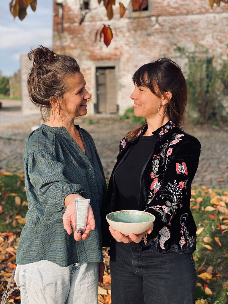Elles souhaitent vous offrir au travers de ce duo crème-mains et céramique, une parenthèse de réconfort et de soin quotidien. Prendre soin de ses mains, c’est honorer ce qu’elles expriment de nous.